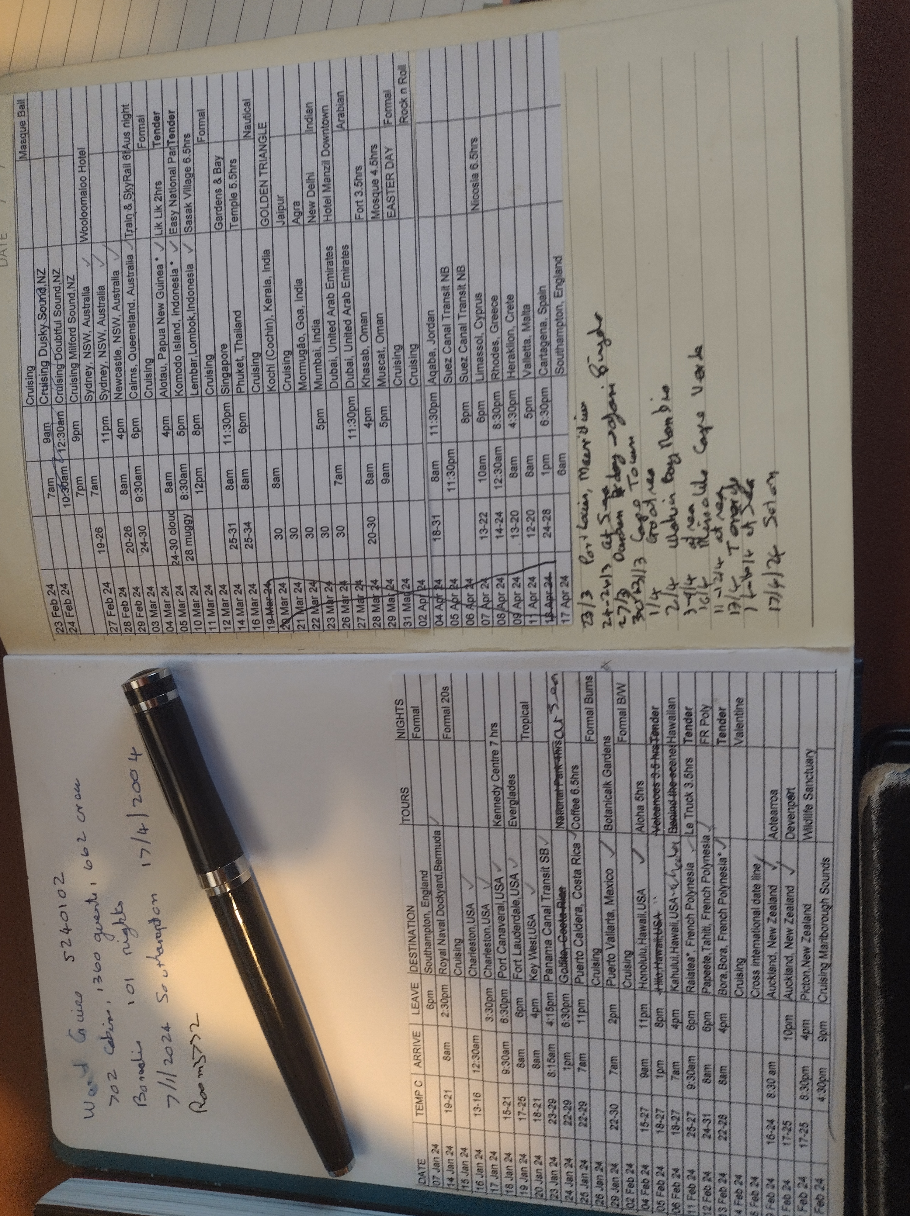Writing a poem daily encourages discipline and routine in my creative process, much like the structured rhythm of life aboard a cruise ship. It helps establish a daily writing habit, pushing the poet to engage with their craft regularly, whether inspired by the vast ocean or a bustling port city. There are 66 days at sea and 35 in port.